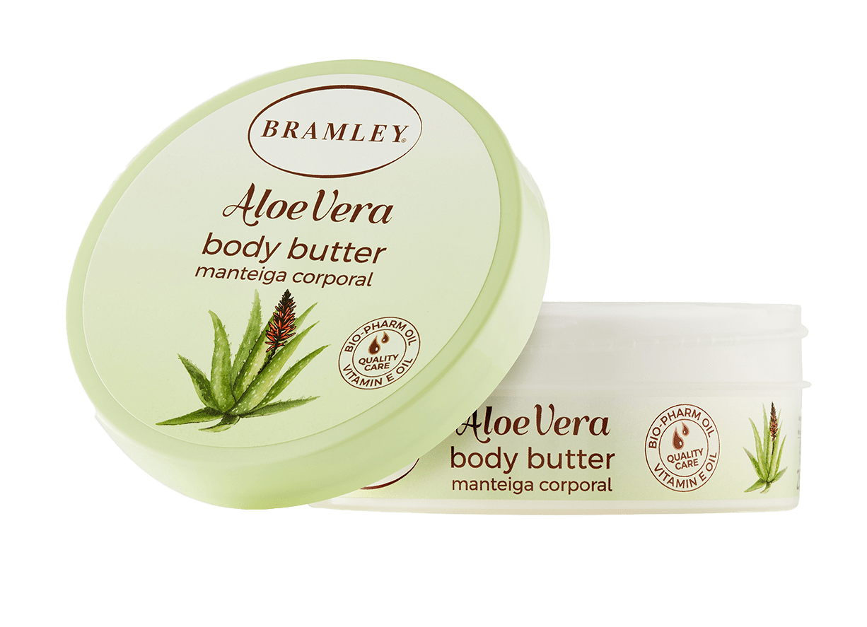 Bramley Aloe Vera Body Butter hydrates and soothes with Aloe Vera extract, while its anti-inflammatory properties help reduce blemishes and wrinkles. Enriched with Vitamin E and Bio-Pharm oil, it provides instant moisture, leaving skin soft, smooth, and refreshed. Perfect for daily use on the body, face, hands, and feet.